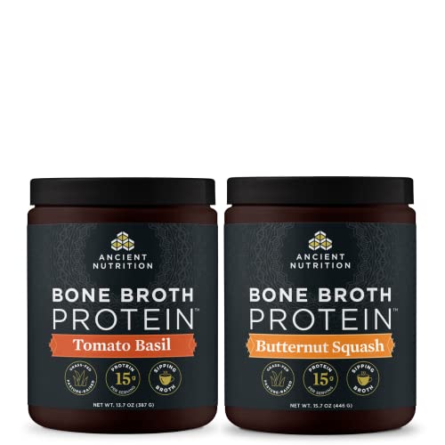 Specification: Ancient Nutrition Bone Broth Protein Powder, Tomato Basil, 15 Servings + Bone Broth Protein Powder, Butternut Squash, 15 Servings