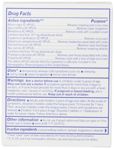Specification: Boiron Coldcalm Cold Relief Medicine, 60 Tablets (Pack of 3). Quick-Dissolvin for Sneezing, Runny Nose, Nasal Congestion and Minor Sore Throat. Non-drowsy Cold Medicine, Natural Active Ingredients