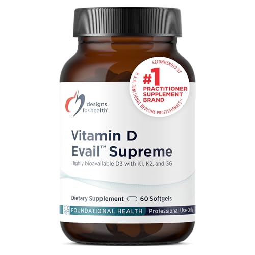 Specification: Designs for Health D-Evail Supreme – 5,000 IU Vitamin D3 Supplement with VIT K (K1, K2 as MK-4) + GG – Bone, Cardiovascular + Immune Support – Improved Bioavailability (60 Softgels)