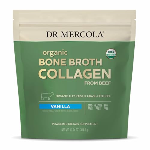 Specification: Dr. Mercola Organic Bone Broth Collagen Powder – Supports Bone Health & Muscle Growth – USDA Organic, Non-GMO, Gluten-Free & Dairy-Free – 30 Servings – Vanilla Flavor