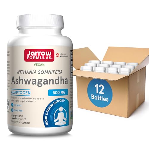 Jarrow Formulas Ashwagandha 300 mg – 120 Veggie Capsules – Overall Health & Resistance to Fatigue – Supplement Supports Endurance, Muscle Recovery & Cognitive Health – 60 Servings (Pack of 12)