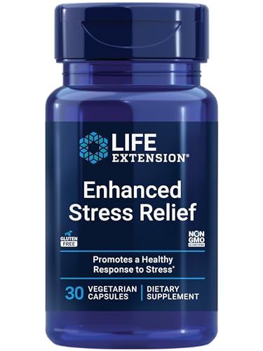 Specification: Life Extension Enhanced Stress Relief, Lemon Balm Extract, L-theanine, decompress with This Supplement for Stress, Gluten-Free, Non-GMO, Vegetarian, 30 Capsules