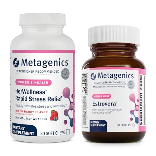 Specification: Metagenics HerWellness Rapid Stress Relief + Estrovera – Women’s Stress Support Supplement with Saffron, L-Theanine & Vitamin B6 – Mixed Berry Flavor, 30 Soft Chews + Women’s Health Supplement for Per