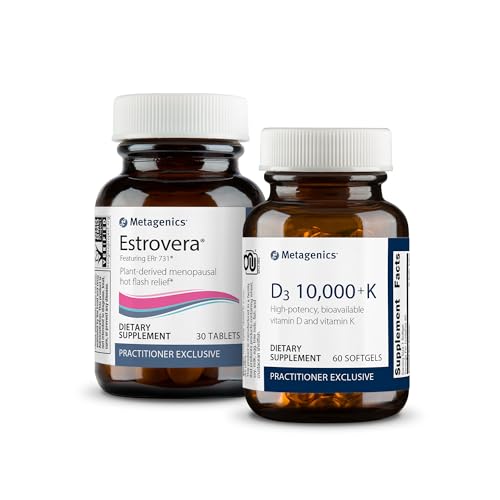 Specification: Metagenics Menopause Duo: HerWellness Estrovera – All-Natural, Hormone-Free Menopause Support Supplement – 30 Tablets & Vitamin D3 10,000 + K – for Bone & Heart Health – 60 Softgels