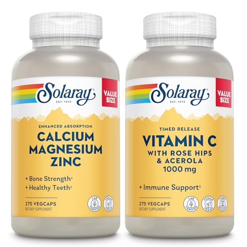 Specification: SOLARAY Calcium Magnesium Zinc and Timed Release Vitamin C – Bone Health, Immune Support Bundle, 1000mg Calcium, 500mg Magnesium, 1000mg Vitamin C Supplement, Vegan, 60-Day Guarantee, 275 VegCaps Each