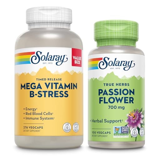 Specification: SOLARAY Mega Vitamin B Stress and Passion Flower Bundle – Timed Release Vitamin B Complex with Vitamin C – Energy, Mood and Immune Support with B6, B12, Plus Soothing Herbal Support, Vegan, 276/100ct