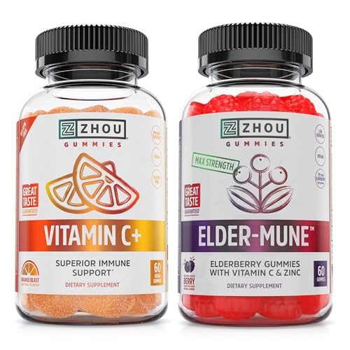 Specification: ZHOU Immune Support Bundle – Elder-Mune Elderberry & Vitamin C Gummies for Adults & Kids, Daily Natural Immune Support Supplements for Women & Men – 60 Elderberry & 60 Vitamin C Gummies